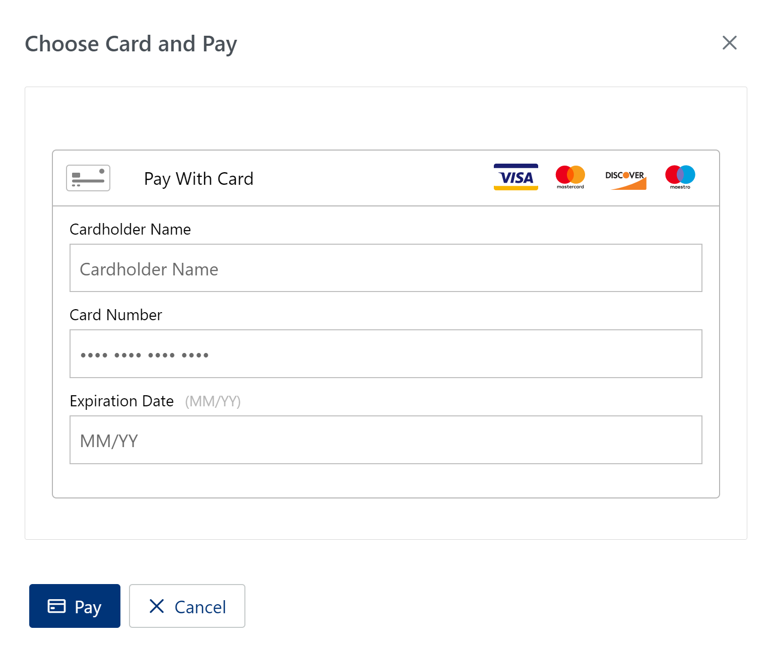 7. W oknie Choose Card and Pay (Wybierz kartę i zapłać), wybierz swoją kartę lub dodaj nową kartę.