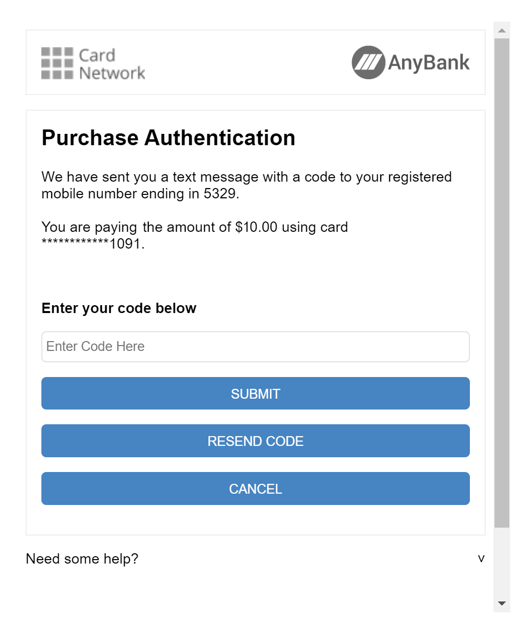 8. Kliknij Pay (Zapłać). Jeśli Twój bank obsługuje standard 3D Secure 2.0, musisz przejść dodatkową kontrolę bezpieczeństwa: otwiera się okno Purchase Authentication (Uwierzytelnianie zakupu), a Ty otrzymujesz wiadomość SMS z kodem. Wprowadź kod i kliknij Submit (Wyślij).